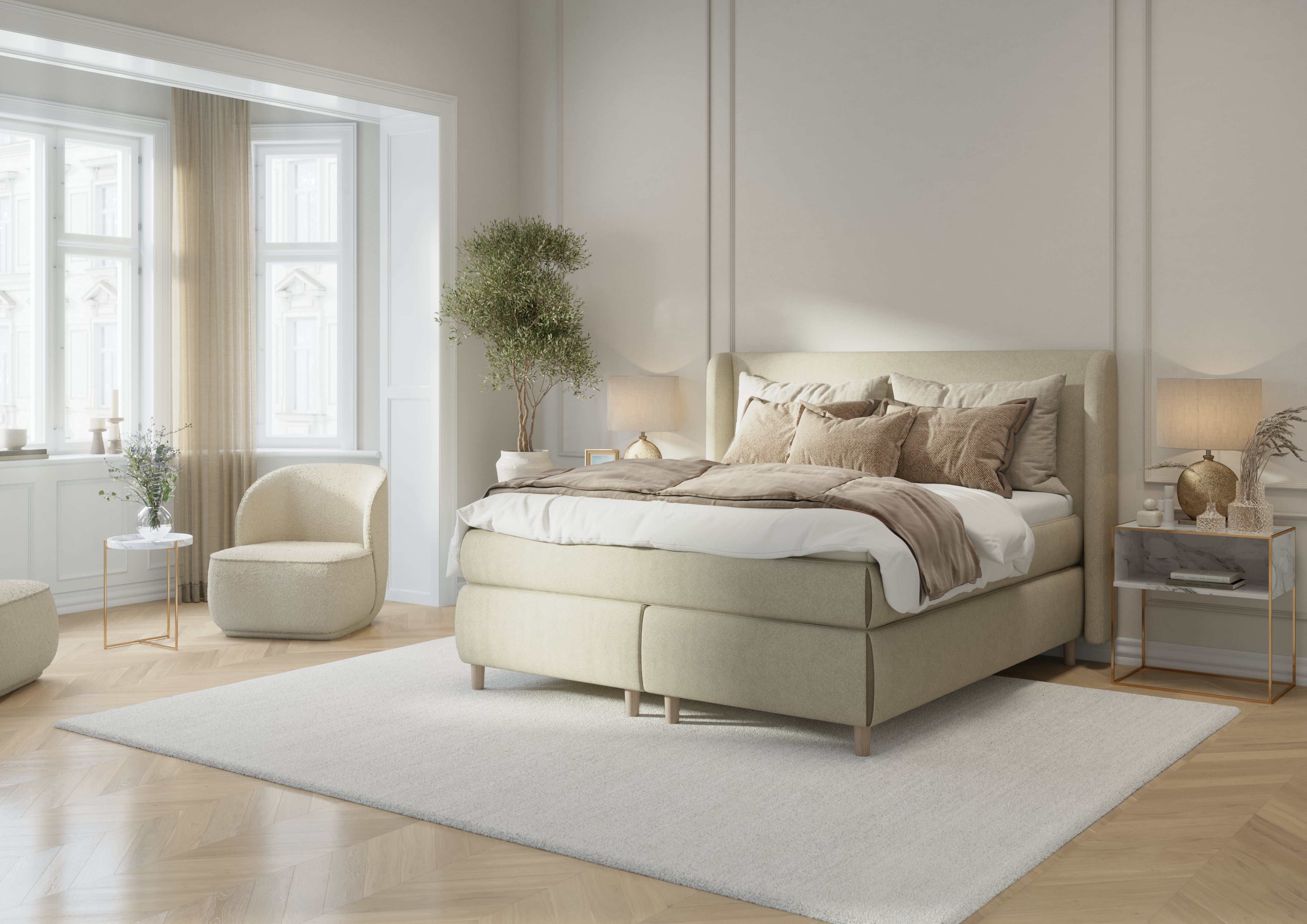 Når du har størrelsen på plass, blir resten enklere: å velge sengetype, fasthet, overmadrass og sengetøy som passer – og å skape et soverom som føles rolig og gjennomtenkt.